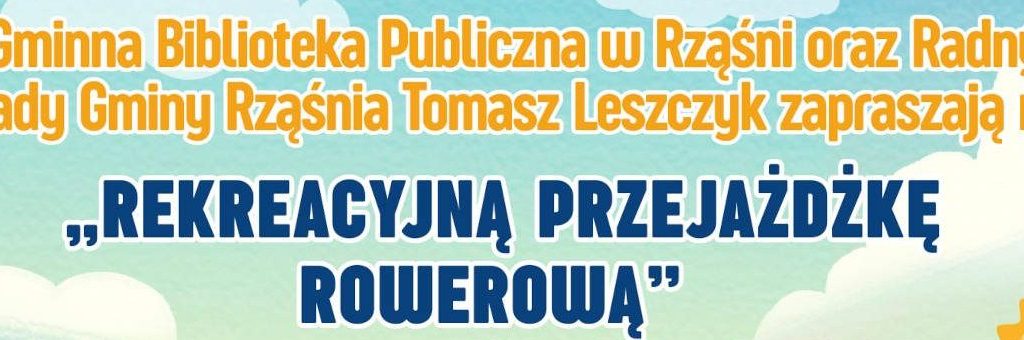 Gminna Biblioteka Publiczna w Rząśni oraz Radny Rady Gminy Rząśnia Tomasz Leszczyk zapraszają na „Rekreacyjną przejażdżkę rowerową” pod patronatem Wójta Gminy Rząśnia Tomasza Stolarczyka w piątek 29 sierpnia 2025 r. o godz. 17.00 na trasie Rząśnia – Gawłów – Biała – Rząśnia (15 km). Zbiórka o godz. 16.45 przy żłobku „Kubuś i Przyjaciele” w Rząśni. Zapisy do …